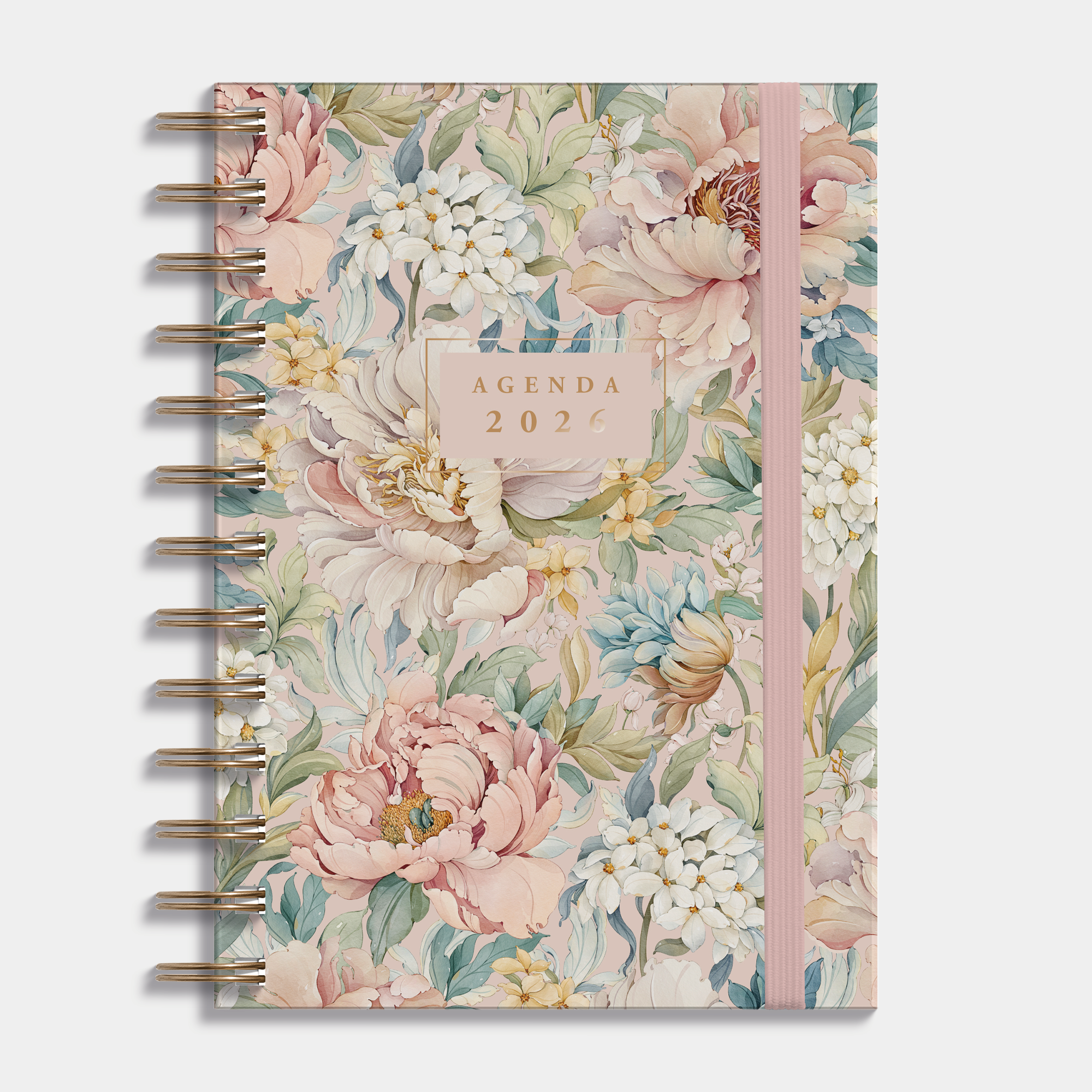 Fröhlicher Ringbuchkalender mit festem Einband, der einen fröhlichen Druck mit Schmetterlingen und Blumen zeigt. Der Text auf dem Einband ist in Goldfolie gedruckt. Das Tagebuch wird mit einem Gummiband geschlossen und hat ein bewegliches Lesezeichen, um schnell zum richtigen Datum zu gelangen. Das Layout des Tagebuchs ist √©√© eine Woche auf zwei Seiten. Außerdem hat dieses Tagebuch 5 transparente Einlagen mit zehn schönen Geschenkkarten. Dieser Kalender läuft von November 2025 bis Dezember 2026.