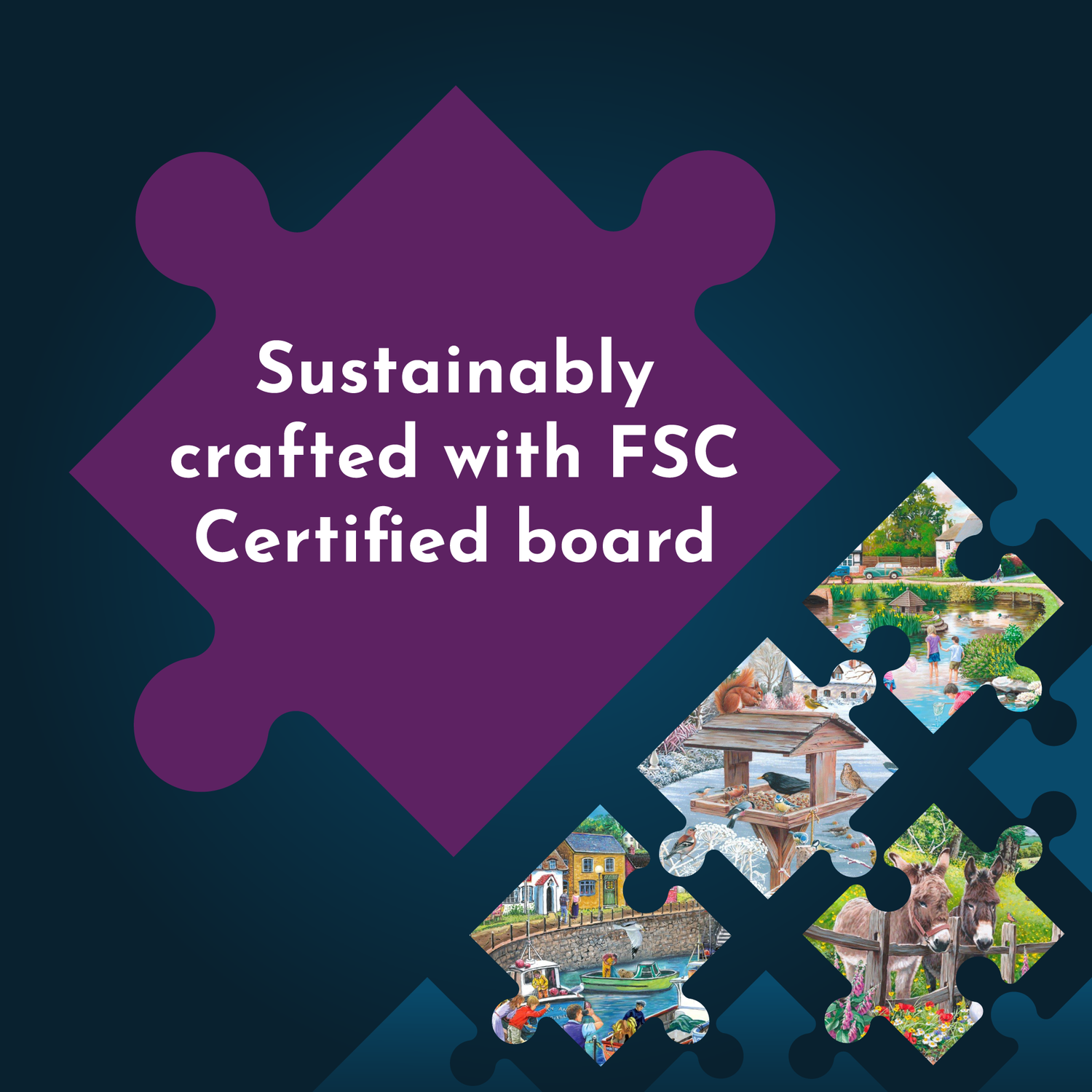 Die XL-Puzzleteile sind leichter zu halten und zusammenzusetzen, was dieses Puzzle ideal für Familien, Puzzle-Anfänger oder alle macht, die gerne mit etwas größeren Teilen arbeiten. Hergestellt aus hochwertigem, nachhaltigem FSC®-zertifiziertem Karton, garantiert dieses Puzzle ein angenehmes und stabiles Legeerlebnis. Das fertige Puzzle ist 48 x 69 cm groß, genau wie ein normales 1.000-Teile-Puzzle!