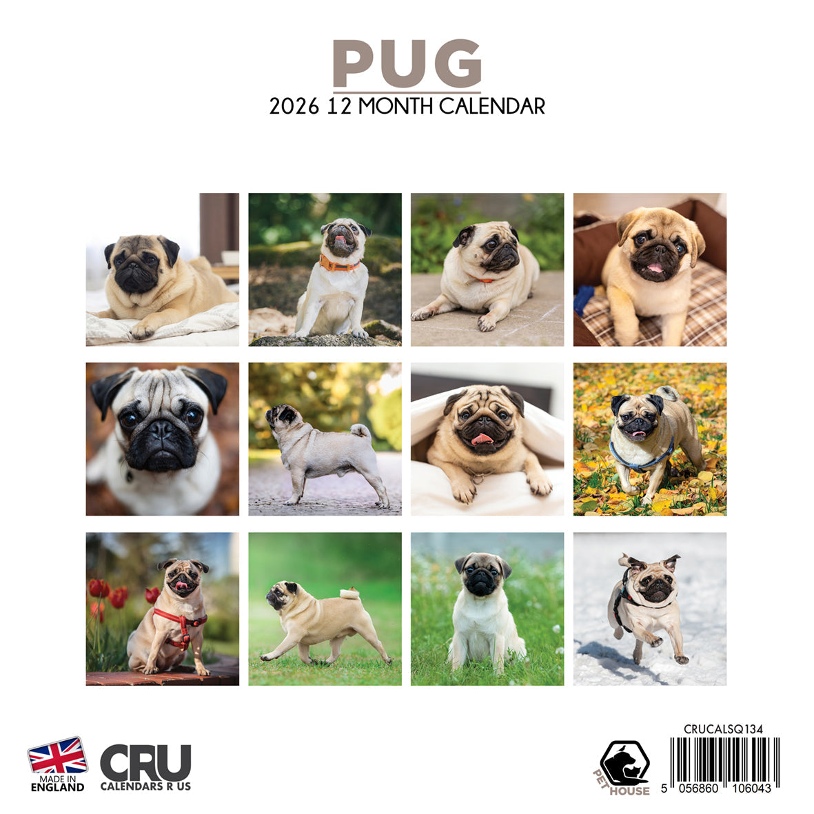 Pug Calendar 2026 - a year of flat snouts, big eyes and happy frowns