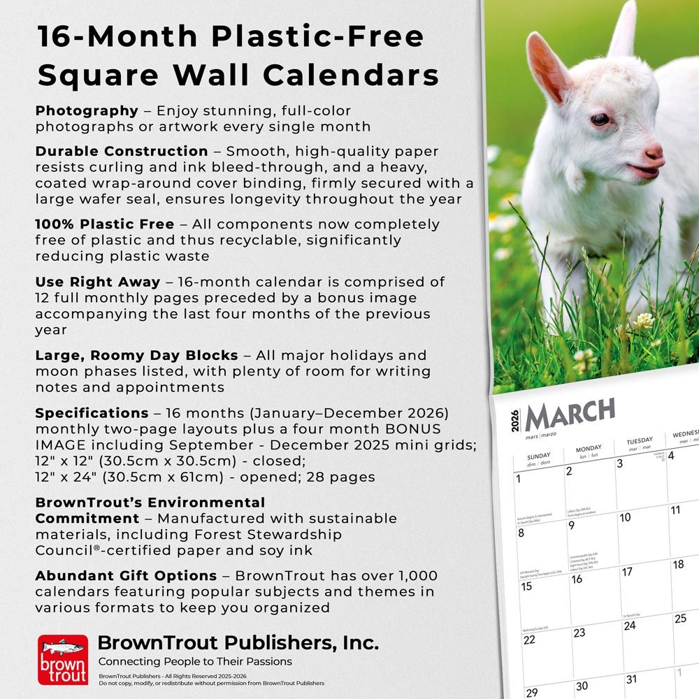 Schmelze dein Herz mit dem Baby Ziegen Kalender 2026 von Browntrout. Dieser bezaubernde Kalender ist ein Muss für jeden Tierliebhaber. Jeder Monat zeigt ein großes, liebevolles Bild von neugierigen, verspielten und unwiderstehlichen Ziegenlämmern - die garantiert jeden Tag ein Lächeln ins Gesicht zaubern.