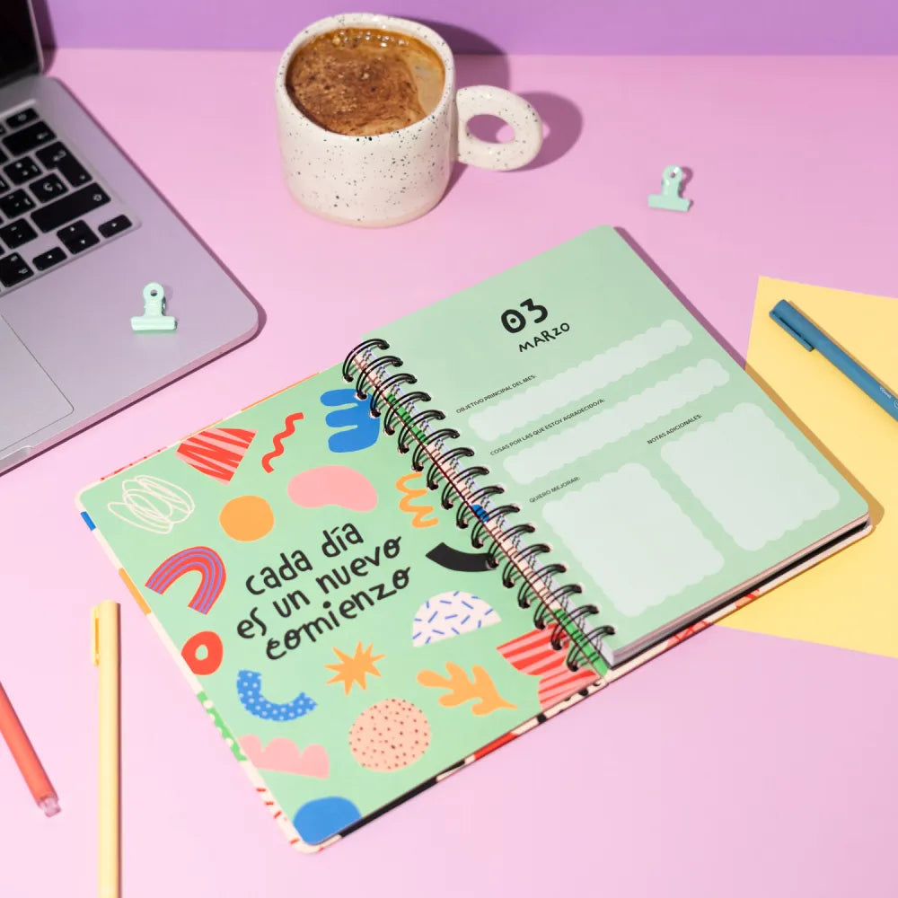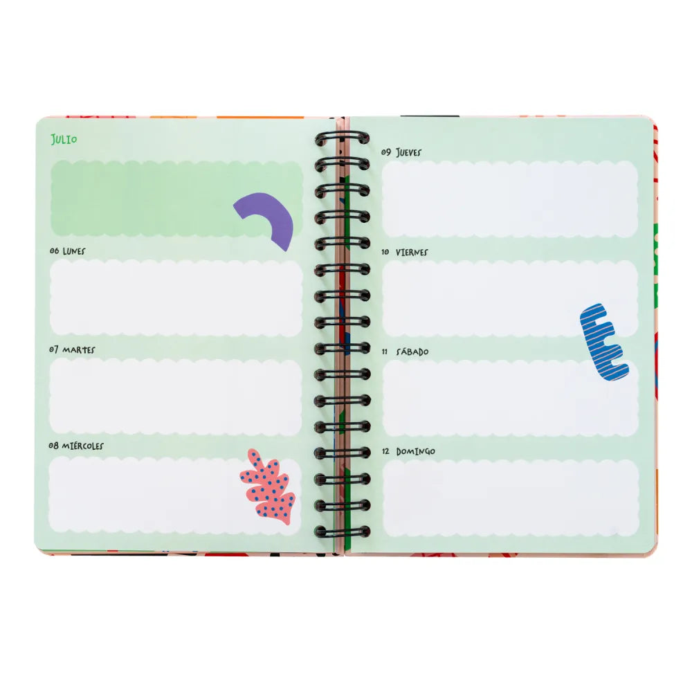 De agenda is niet alleen prachtig vormgegeven, maar ook bijzonder praktisch. Bovendien: dankzij de wire-o binding, gepersonaliseerd binnenwerk en creatieve extra’s zoals stickers en boekenleggers, is deze agenda een functioneel sieraad voor elke tas of bureau.