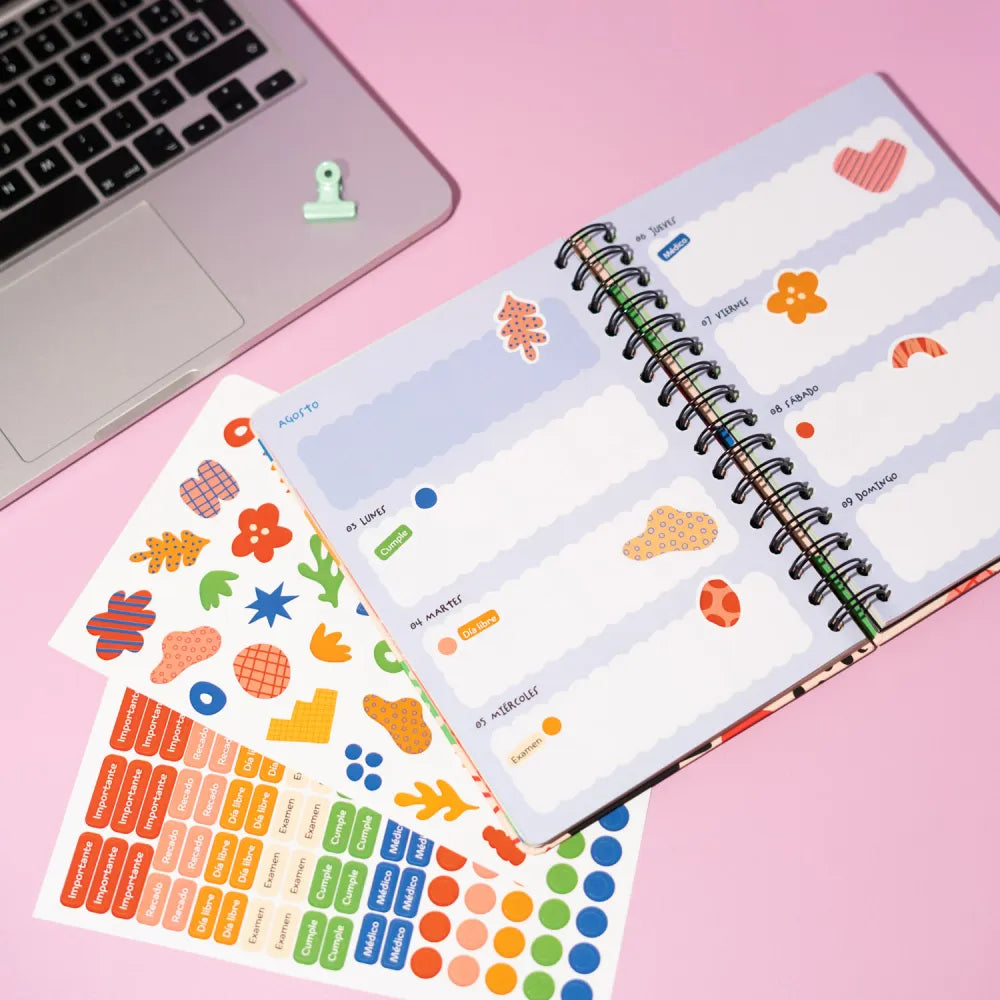 • Creatief tintje: 2 pagina’s met gepersonaliseerde stickers om je planning eigen te maken