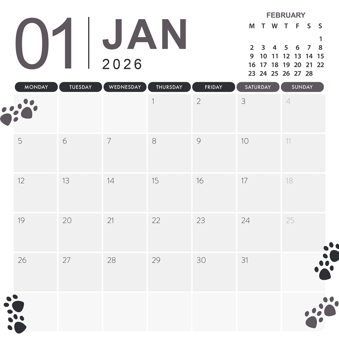 For starters: the 12 carefully selected photos will make you smile every time. In addition: the 295 x 295 mm square format provides a perfect balance between image and ease of use. In addition: the clear monthly overview is ideal for scheduling appointments. Also: with wire-o binding and a handy hanging hole you can hang it up effortlessly. At last: printed in English - perfect for international dog lovers.