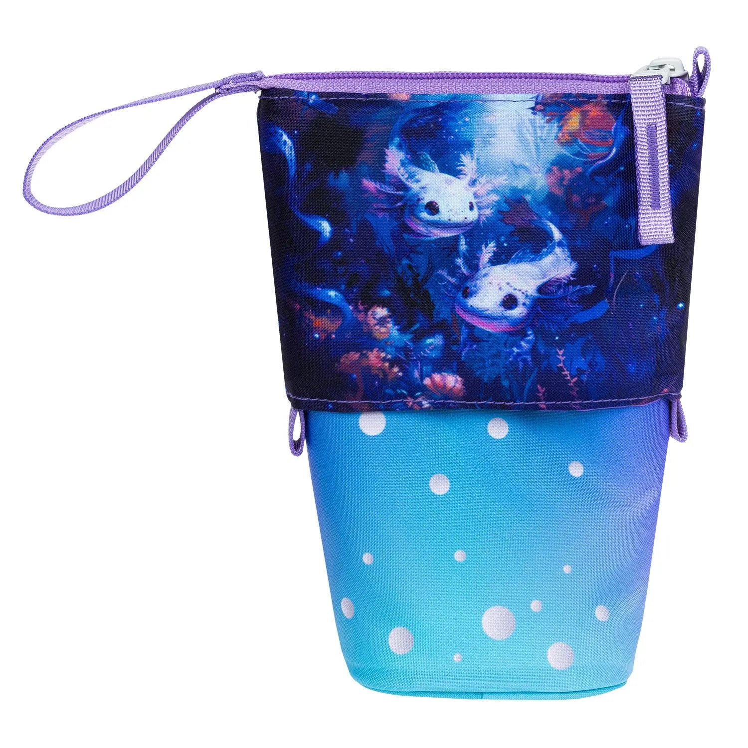 De Baagl Pop-up Etui Axolotl is een slim en veelzijdig etui met een speels axolotl design. Dankzij het innovatieve ontwerp verander je dit etui met één simpele beweging in een staande penhouder. Ideaal voor school, thuis of onderweg – perfect voor kinderen én creatieve geesten.
