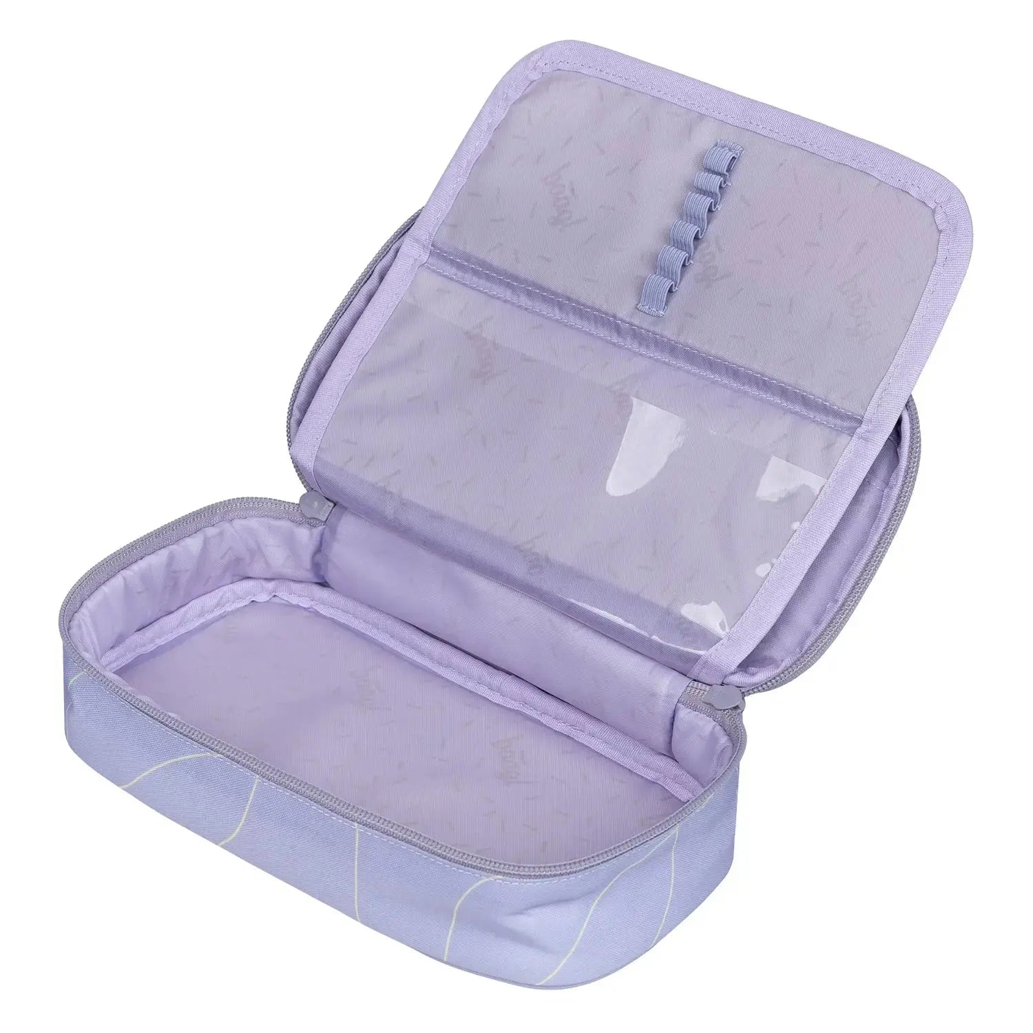 La Bolsa Escolar Baagl Miércoles cuenta con un bolsillo con solapa y trabillas elásticas, que mantiene en su sitio bolígrafos, lápices, rotuladores y otros utensilios de escritura. Además hay un bolsillo extra con cremallera en el interior, muy práctico para guardar pequeños objetos, como una goma de borrar o un sacapuntas.