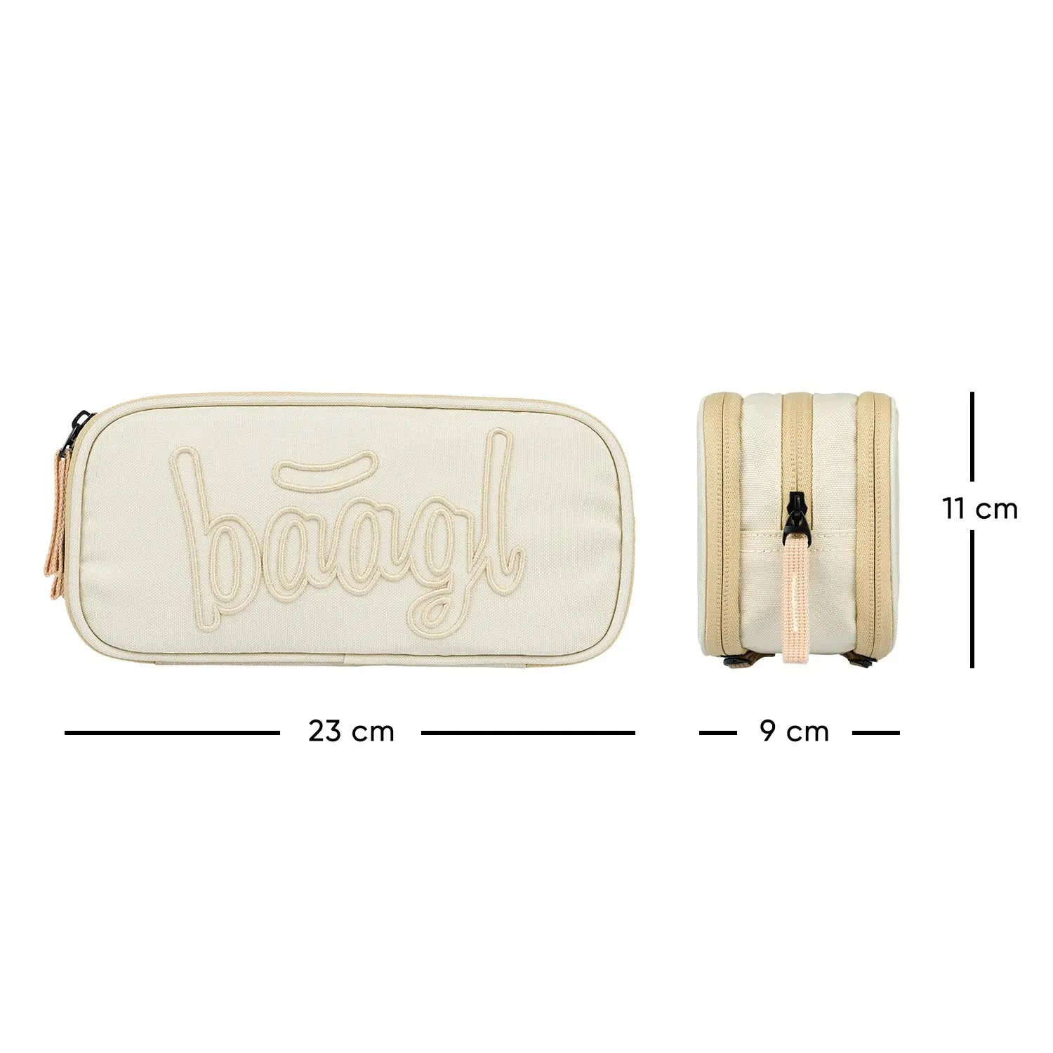 Het Baagl Student Etui Beige 3-ritsen is de ideale keuze voor leerlingen die houden van een rustige, neutrale en tijdloze uitstraling. Met het warme Beige design is dit etui een echte stijlvolle blikvanger. Dankzij de slimme indeling en meerdere vakken berg je al je schoolspullen overzichtelijk en veilig op.