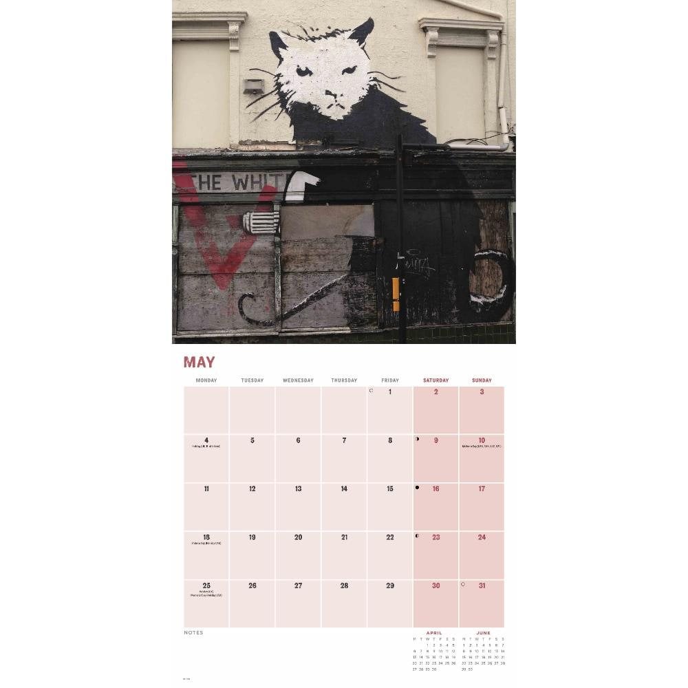 El Calendario Banksy 2026 Carrusel está hecho de papel satinado y comienza en septiembre de 2025 y tiene una gran imagen del Banksy de enero de 2026 a diciembre de 2026 debajo con las fechas disponibles del mes con espacio para notas personales y cumpleaños. Algunos días festivos importantes ya se han añadido con antelación en el calendario. Los textos del calendario Banksy de 16 meses de Carousel están impresos en inglés. Desplegado, el calendario mide aprox. 30 x 60 cm, con la imagen en la parte superior y las fechas del mes debajo.