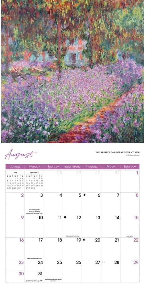 Not only does this calendar bring structure to your days, but also an artistic experience to your space. This is why art lovers choose Monet year after year. In short, a visual tranquility that inspires, amazes and calms.