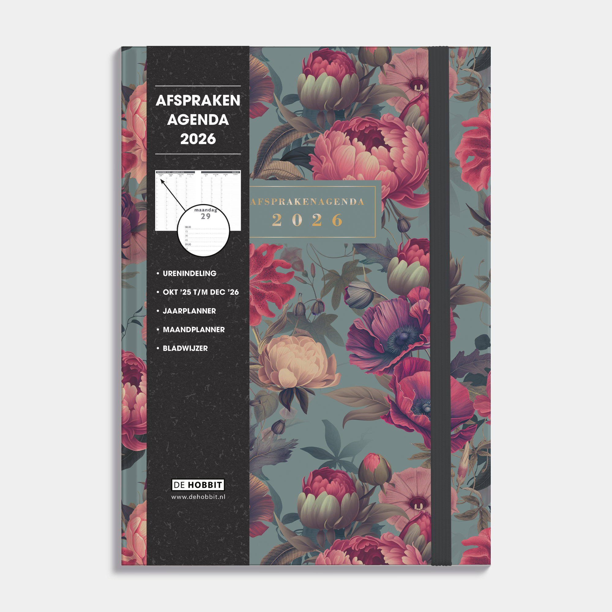 Tu ne manqueras aucun rendez-vous avec ce grand agenda de rendez-vous. Cet agenda A4 à couverture rigide présente sur un fond sombre un motif classique de roses avec le texte imprimé en feuille d'or. La mise en page de l'agenda de rendez-vous est √©√© une semaine sur deux pages en colonnes verticales, dans ces colonnes le temps est divisé en quarts. Cet agenda de rendez-vous contient également des aperçus annuels et mensuels. L'agenda est maintenu fermé par un élastique et dispose d'un ruban de lecture pour accéder rapidement au bon rendez-vous. Cet agenda de rendez-vous s'étend d'octobre 2025 à décembre 2026.