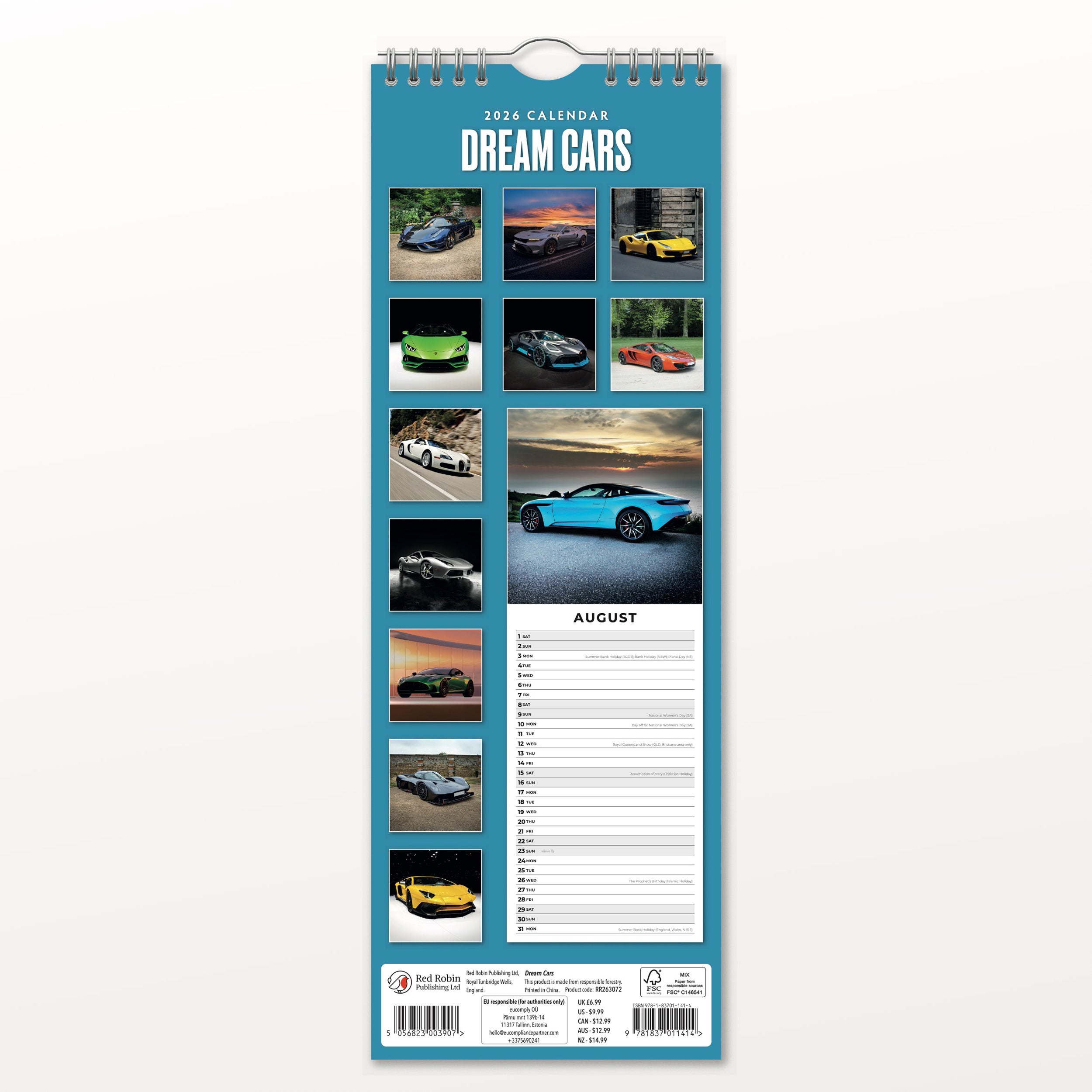 Do you dream of gleaming sports cars, aerodynamic shapes and pure power on wheels? Then the Dreamcars Slimline Calendar 2026 by Red Robin is the calendar for your wall. In other words: each month shows a breathtaking dream car - from Italian super sports cars to high-end hypercars.