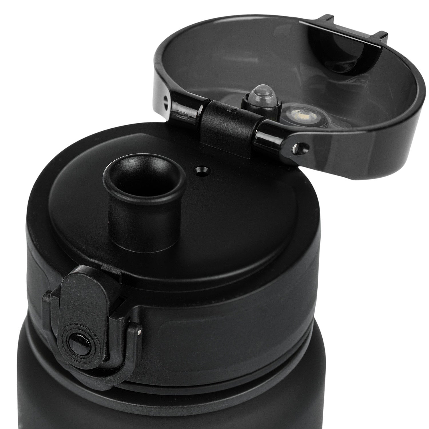 Le couvercle scellable ne laisse pas échapper une seule goutte de boisson et garantit une utilisation facile et intuitive. La bouteille est également livrée avec une passoire, ce qui te permet de l'utiliser pour des limonades avec des fruits ou du thé (le matériau convient également aux boissons chaudes). Une sangle est également attachée à la bouteille, ce qui permet de la transporter facilement dans la main.