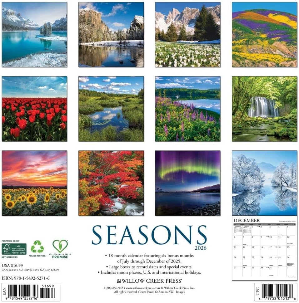 Are you someone who lives with the seasons? With the Seasonal Calendar 2026 you will experience an atmospheric transition from winter to spring, summer to fall every month. In other words, this calendar brings you closer to nature, with stunning images of blooming fields, summer sunshine, falling leaves and winter landscapes.
