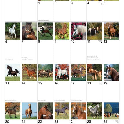 Fai battere il cuore con il calendario I Love Horses 366 Days 2026 di Browntrout. Questo incantevole calendario è una festa per tutti gli appassionati di cavalli: ogni mese presenta una bellissima immagine di questi nobili animali, stampata su carta lucida di alta qualità. Perfetto per chi vuole lasciarsi ispirare ogni giorno dalla potenza, dalla grazia e dalla bellezza dei cavalli.