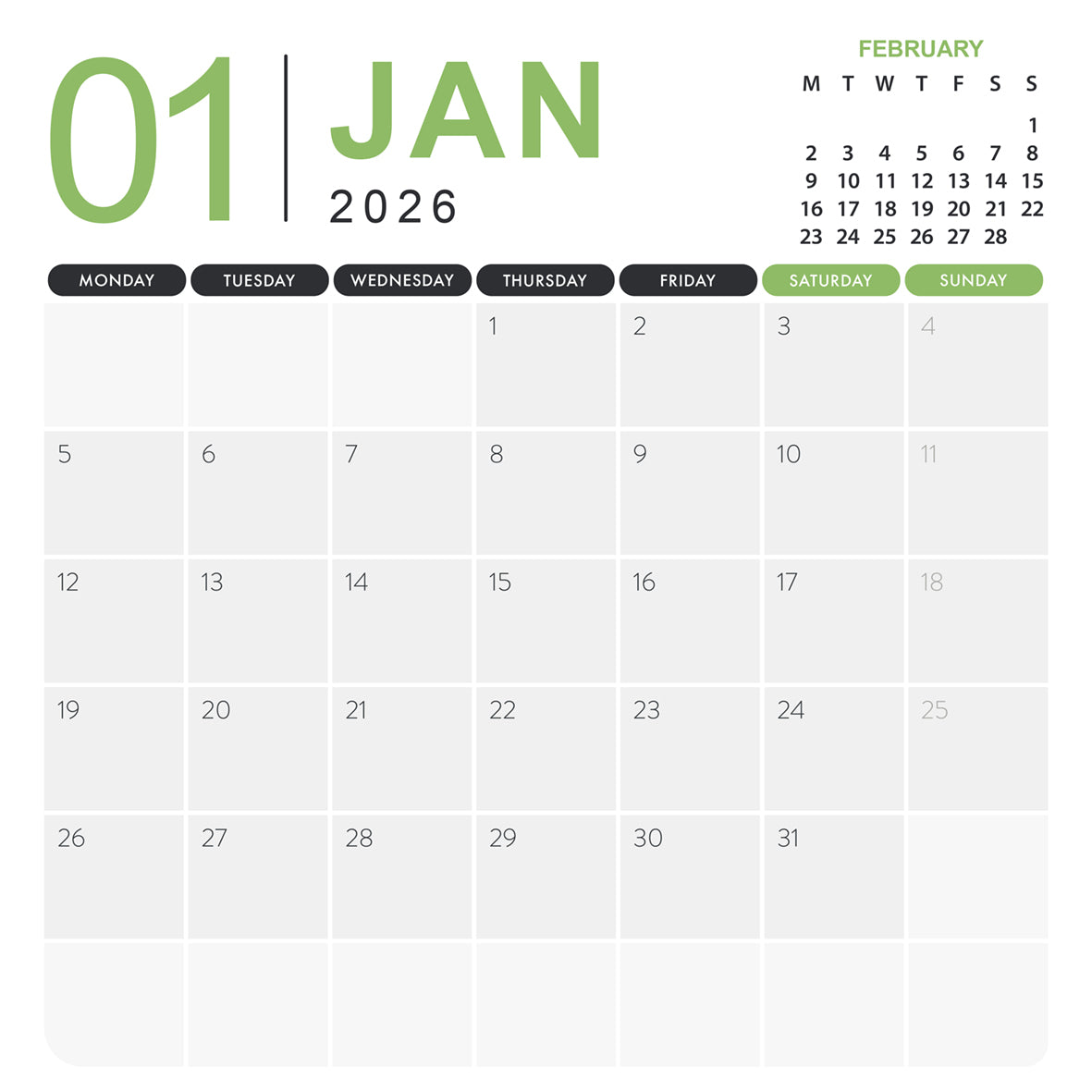 - 🇬🇧 Bovendien: Engelstalig kalendarium – met duidelijke maandnamen en weekindeling vanaf maandag