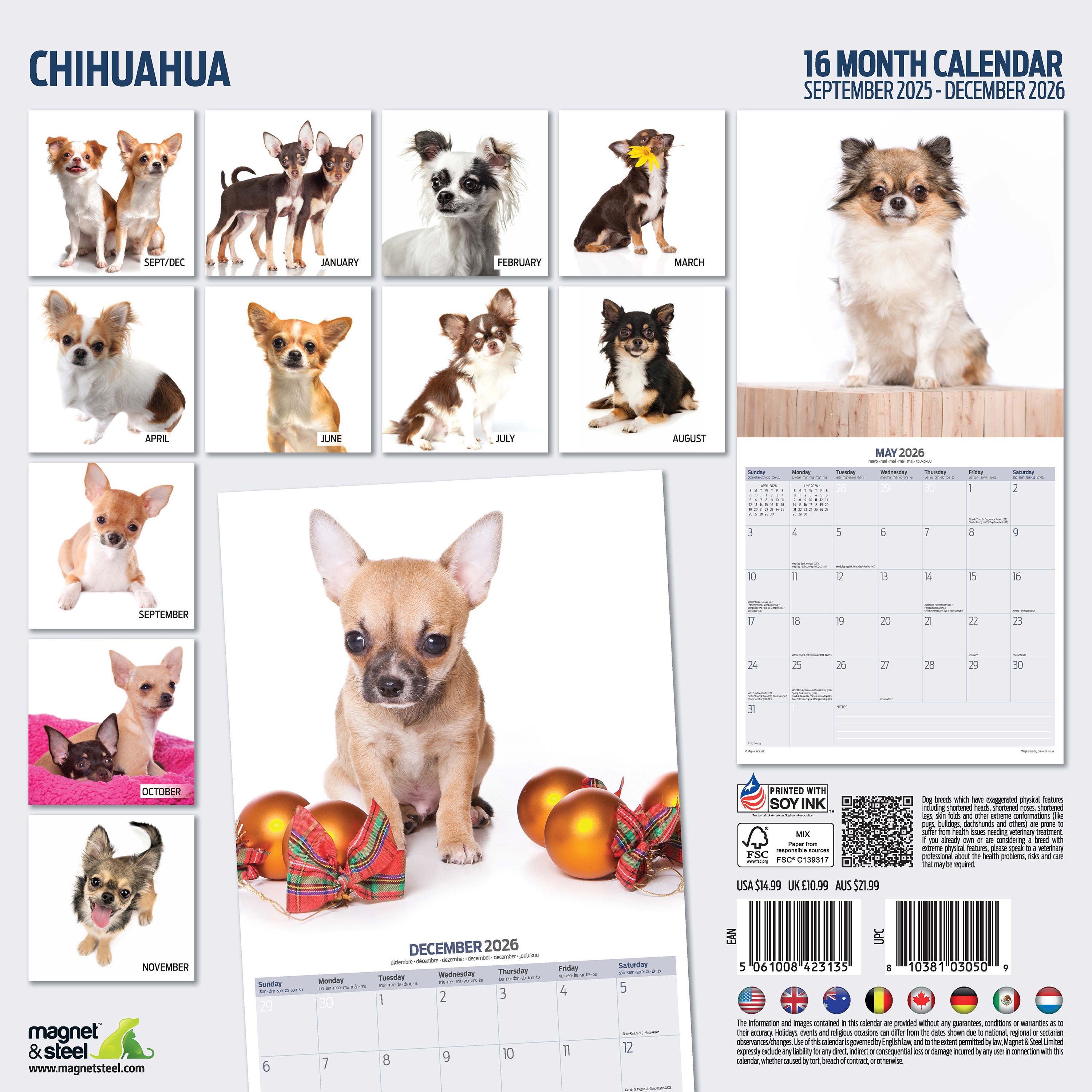 Per un vero amante del Chihuahua come te, un bellissimo calendario come questo non può assolutamente mancare. Il calendario Chihuahua 2026 presenta 13 immagini davvero straordinarie di questo bellissimo cane, che è il più piccolo tra le razze canine. Il Chihuahua appartiene al gruppo dei Companion Dogs, la sua piccola statura finemente costruita ma potente lo rende particolarmente impressionante per chiunque lo incontri sul suo cammino. Alcune persone, dopo aver visto questo piccolo Chihuahua del Messico, non desiderano più nessun'altra razza. I loro cuori sono stati rubati da questo cane leale, impavido e di carattere. È così anche per te? Allora ordina subito il tuo calendario Chihuahua personale e regalagli una splendida collocazione sulla parete!