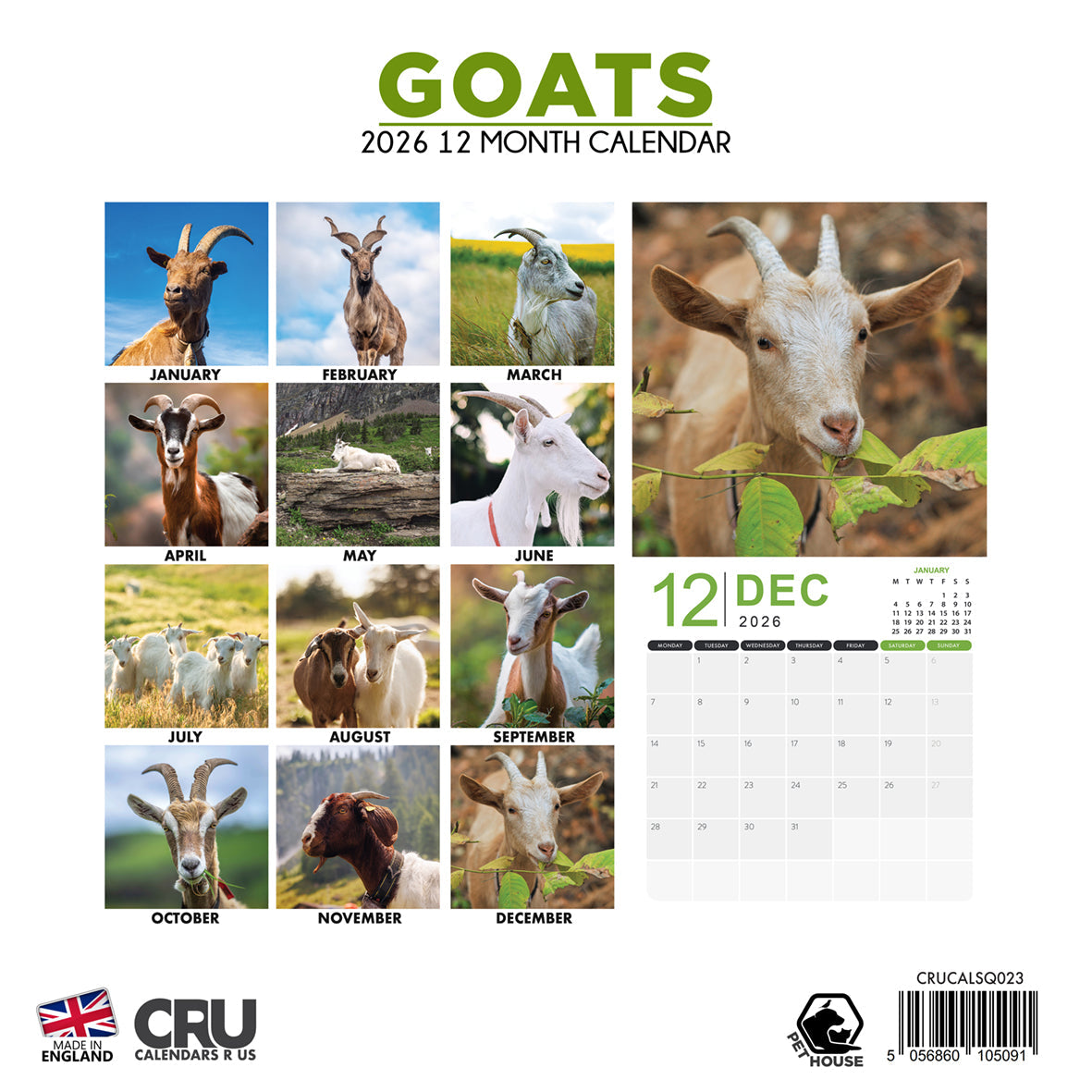 Om te beginnen: geiten zijn speels, eigenwijs en heerlijk fotogeniek – perfect voor een jaar vol boerenpret. Daarnaast: het royale formaat van 295 x 295 mm biedt volop ruimte voor zowel de foto's als jouw planning. Daarbij komt: het Engelstalige kalendarium is helder en start op maandag. Bovendien: dankzij de wire-o binding en het geponste ophanggat hang je de kalender zo op. Tot slot: de perfecte mix van vrolijkheid en functionaliteit voor jong en oud!