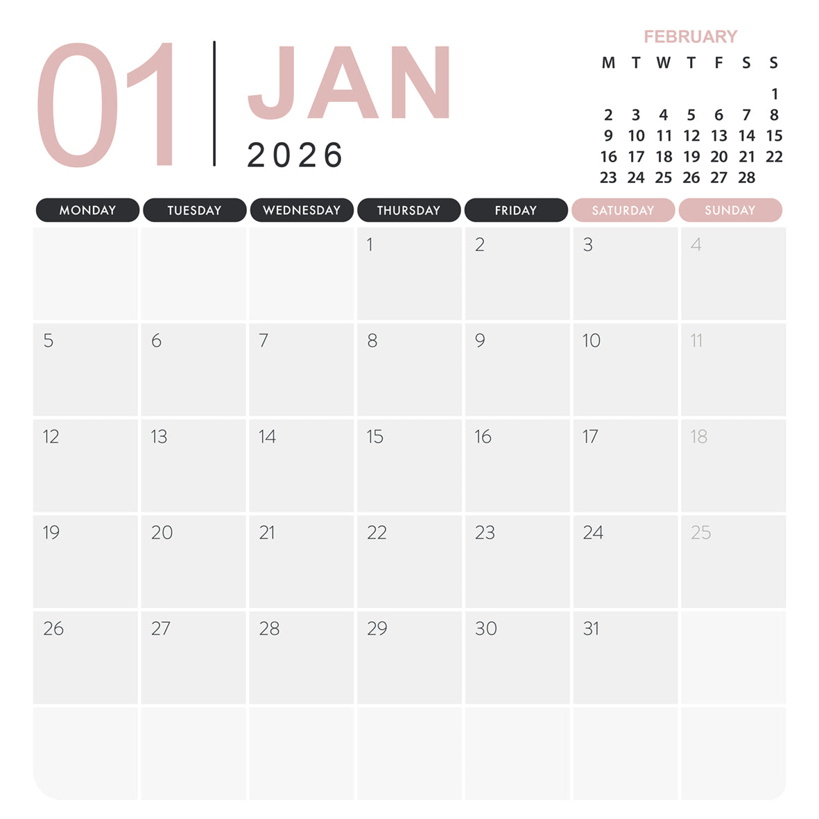 • 🇬🇧 Bovendien: Engelstalig kalendarium – inclusief maandnamen en weekstart op maandag