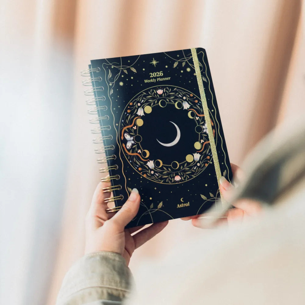 Geef structuur aan je dagen met een hemelse touch dankzij de Astral Agenda 2026. Met andere woorden: plan je weken onder een sterrenhemel vol creativiteit en mystiek – ideaal voor liefhebbers van astrologie, maanfasen en spirituele elegantie.