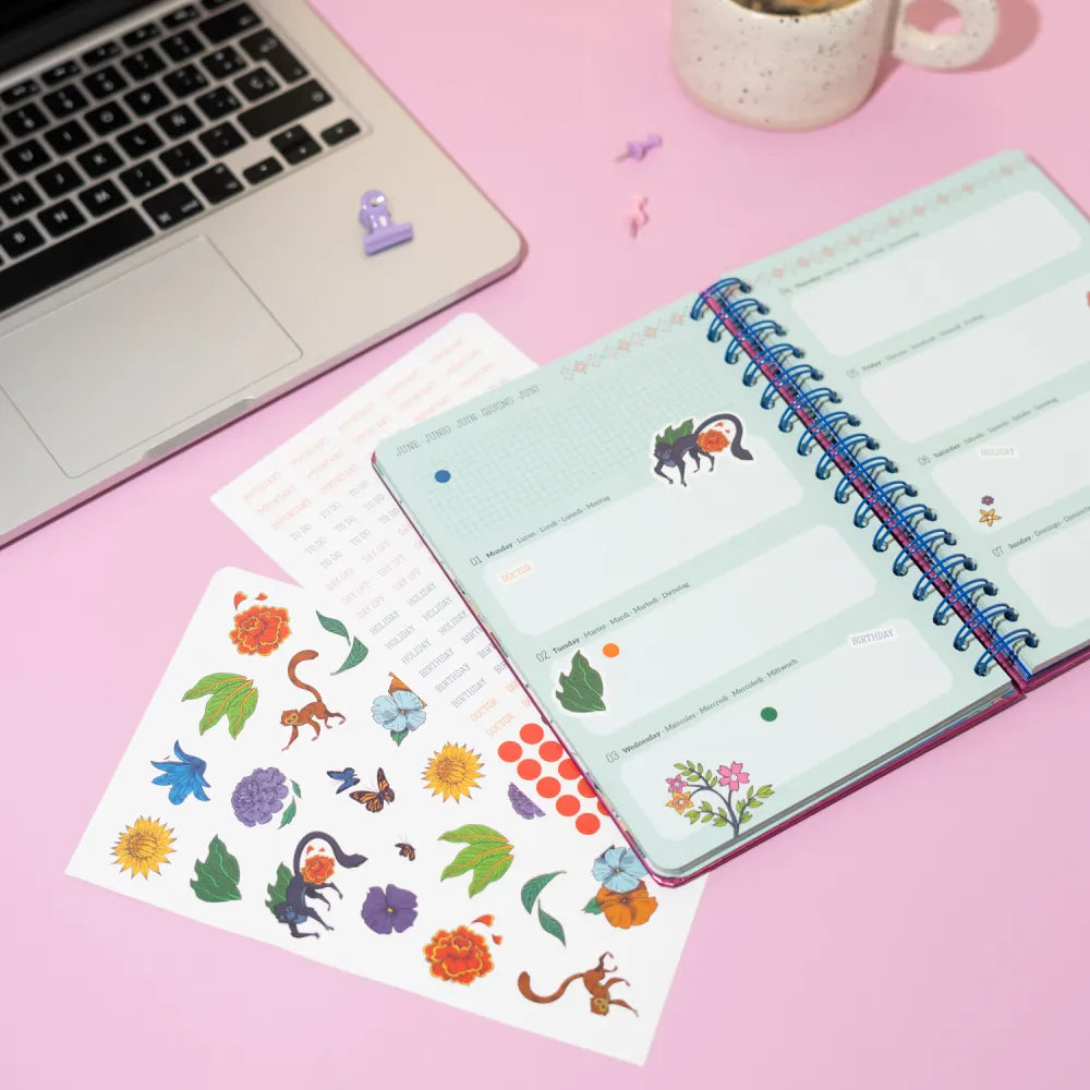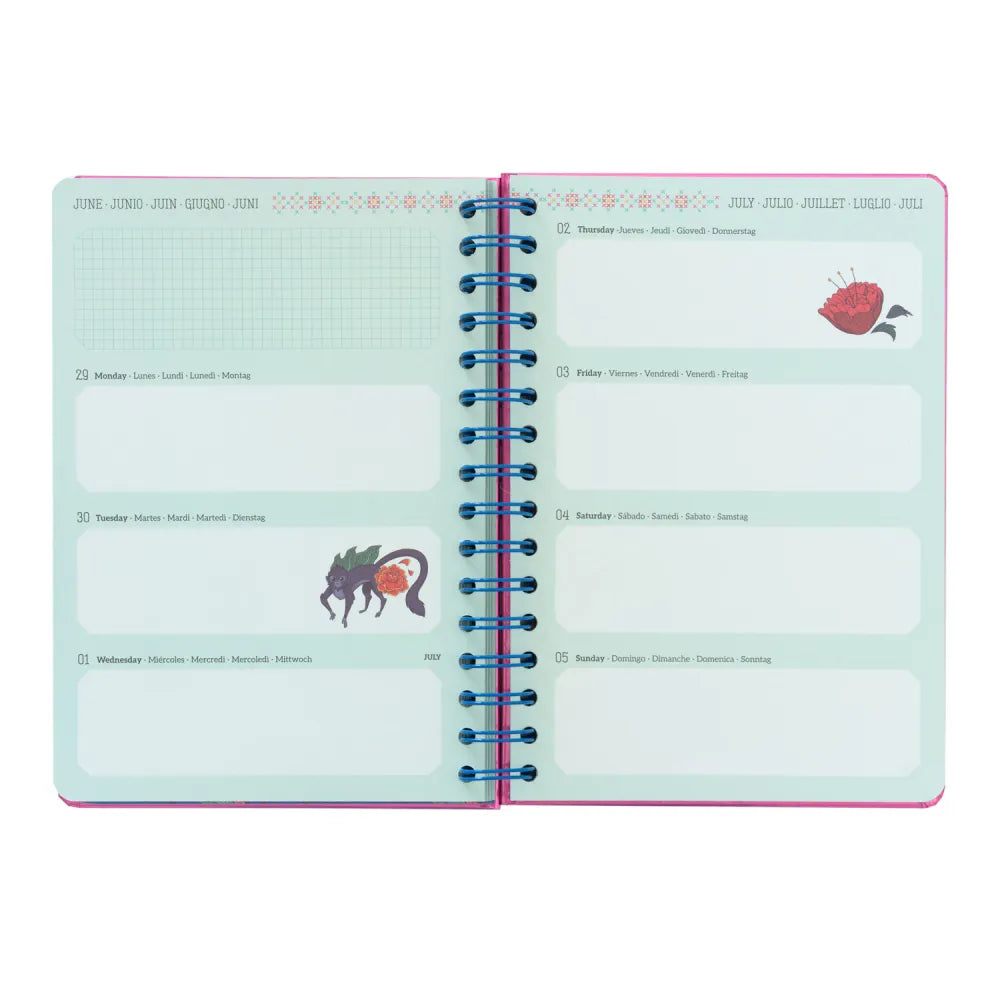 Elke week is vormgegeven met visuele details geïnspireerd op Frida’s werk en stijl. Bovendien: dankzij het stevige formaat, de wire-o binding en handige extra’s zoals stickers en boekenleggers is deze agenda niet alleen mooi, maar ook praktisch voor dagelijks gebruik.