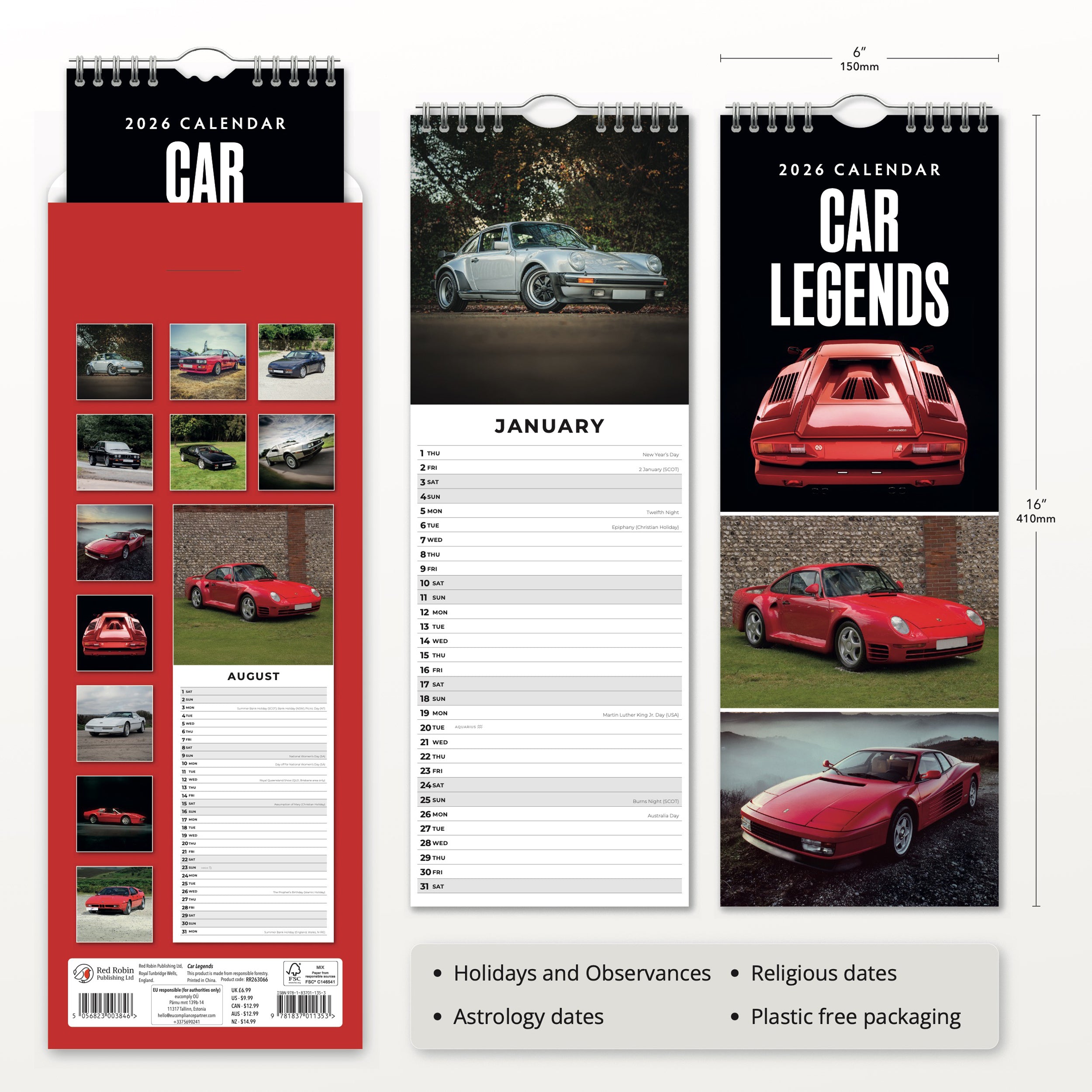 Ben jij gefascineerd door legendarische auto’s die geschiedenis hebben geschreven? Dan is de Car Legends Slimline Kalender 2026 van Red Robin een ware eyecatcher voor jouw muur. Met andere woorden: deze kalender brengt elke maand een iconisch model tot leven — van baanbrekende sportwagens tot tijdloze klassiekers.