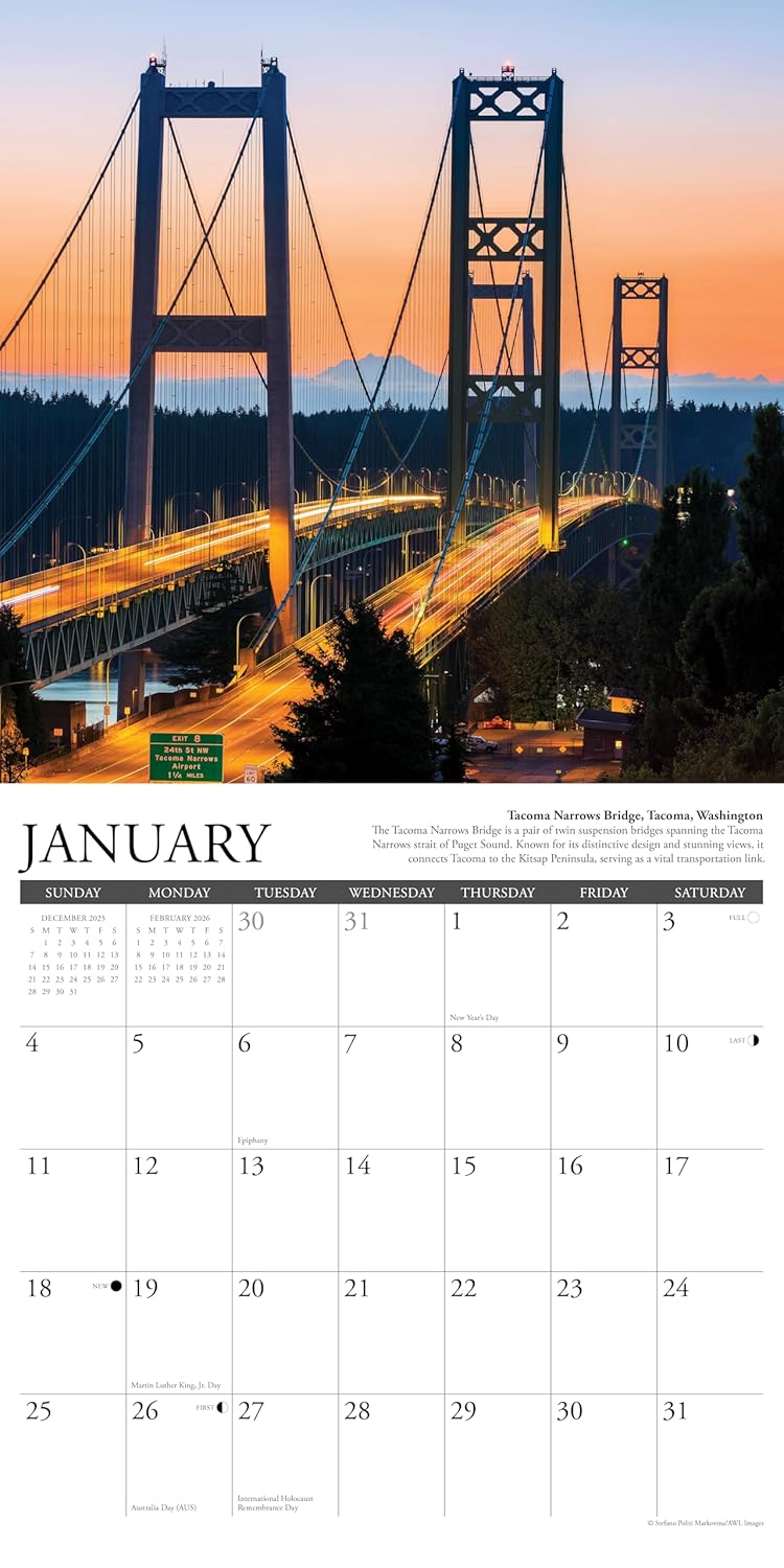 De kalender heeft in totaal 13 verschillende full-color afbeeldingen van 30 x 30 cm (1 full-color afbeelding bij de data van de maanden oktober, november en december van 2025). Hierdoor kunt u de kalender in 2026 al een mooi plekje geven. Vanaf 2026 heeft de wandkalender iedere maand een andere prachtige full-color afbeelding van de Pacific Northwest.