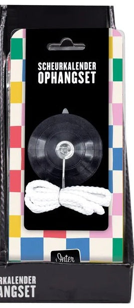 De scheurkalender ophangset, Is een handige ophangset voor elke scheurkalender. Zonder te hoeven boren of schroeven hang je nu je favoriete scheurkalender op aan de muur.