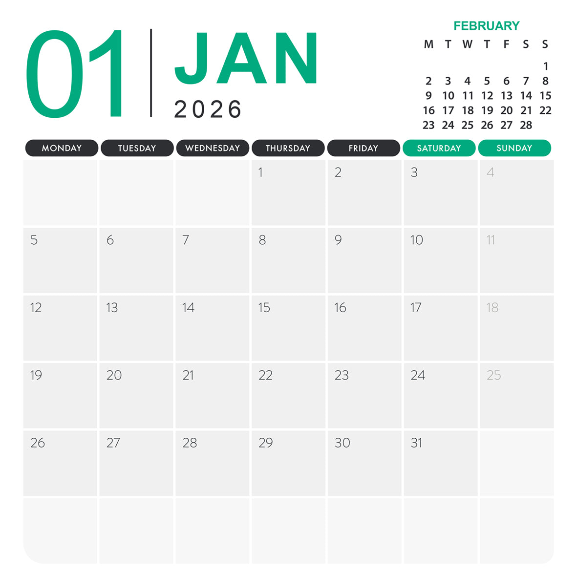 • 🇬🇧 Bovendien: Engelstalig kalendarium – overzichtelijk en internationaal bruikbaar