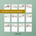 - Maandelijks een unieke aquarel en botanische illustratie in zachte strand- en natuurtinten