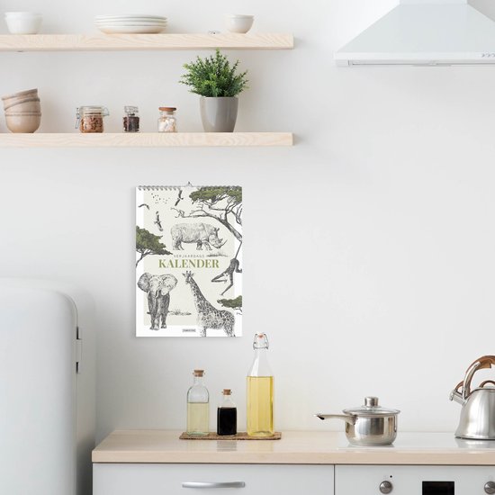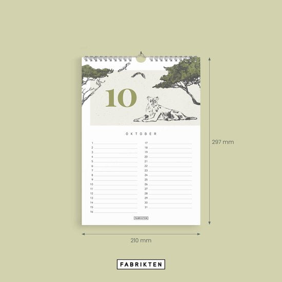 Deze verjaardagskalender is met zorg in Nederland ontworpen en geproduceerd op 300 grams duurzaam Biotop papier. De levendige safari-illustraties, gecombineerd met een metaalkleurige spiraalbinding en een praktisch ophangoog, zorgen voor een speelse en stijlvolle uitstraling aan de muur.