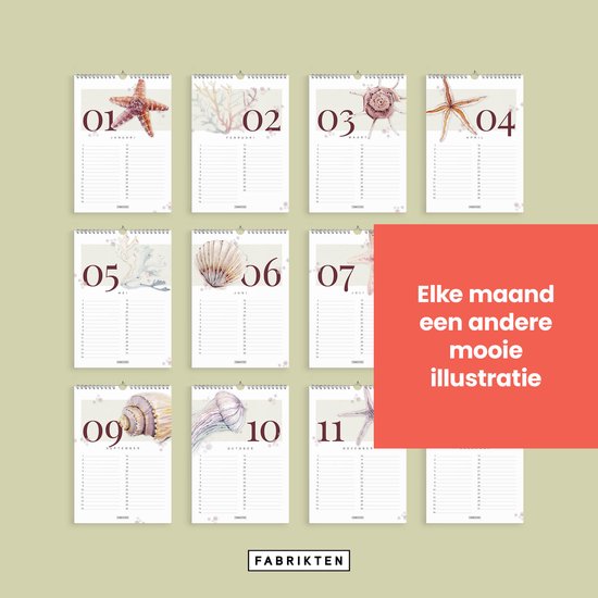 De Verjaardagskalender Strand in A4 formaat helpt je moeiteloos alle verjaardagen te onthouden dankzij de ruime schrijfruimte van 7.7 cm. Ideaal om verjaardagen en bijzondere momenten overzichtelijk en in een rustige, zomerse sfeer bij te houden, het hele jaar door.
