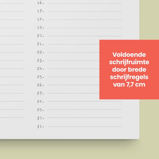 - Ruime schrijflijnen (7.7 cm) voor notities