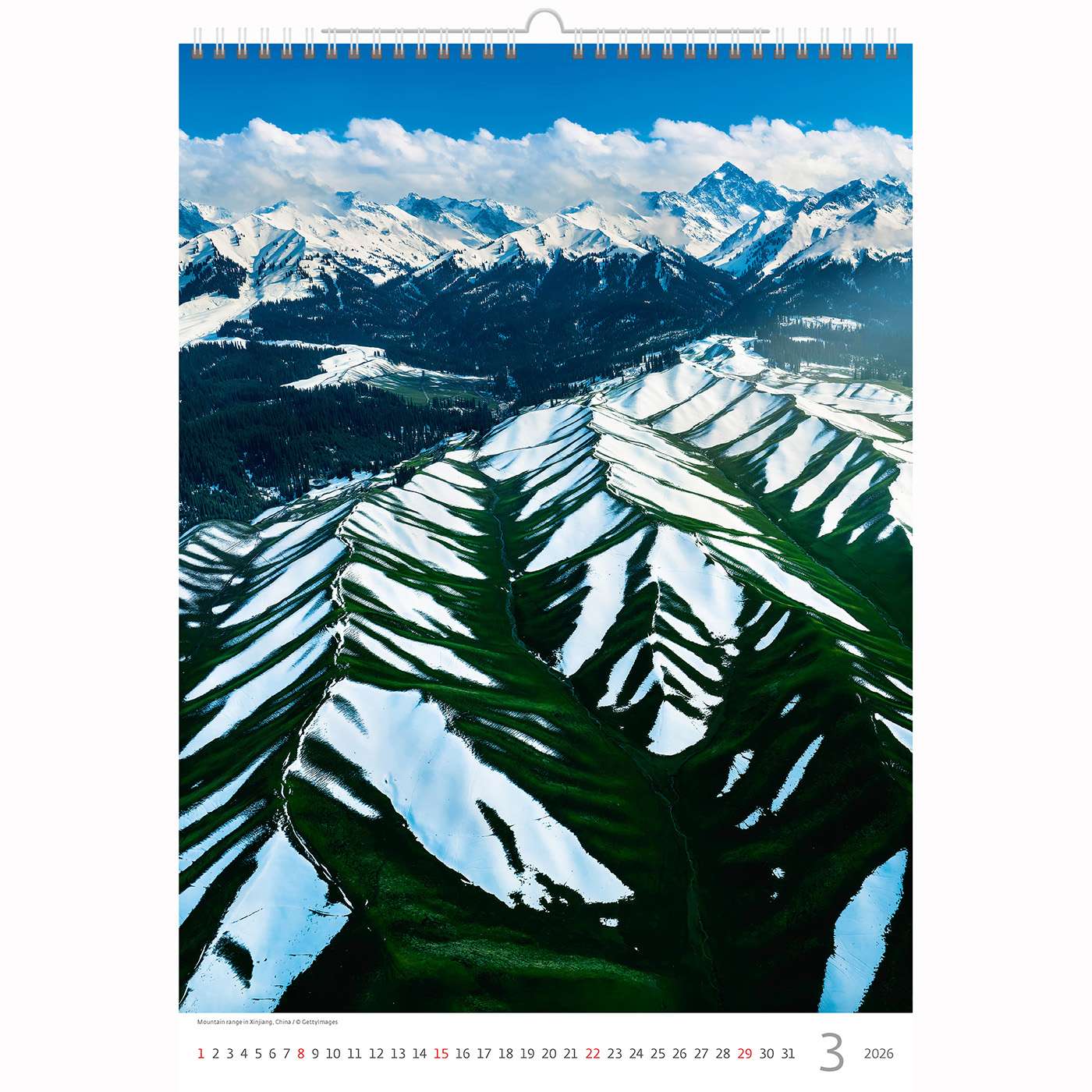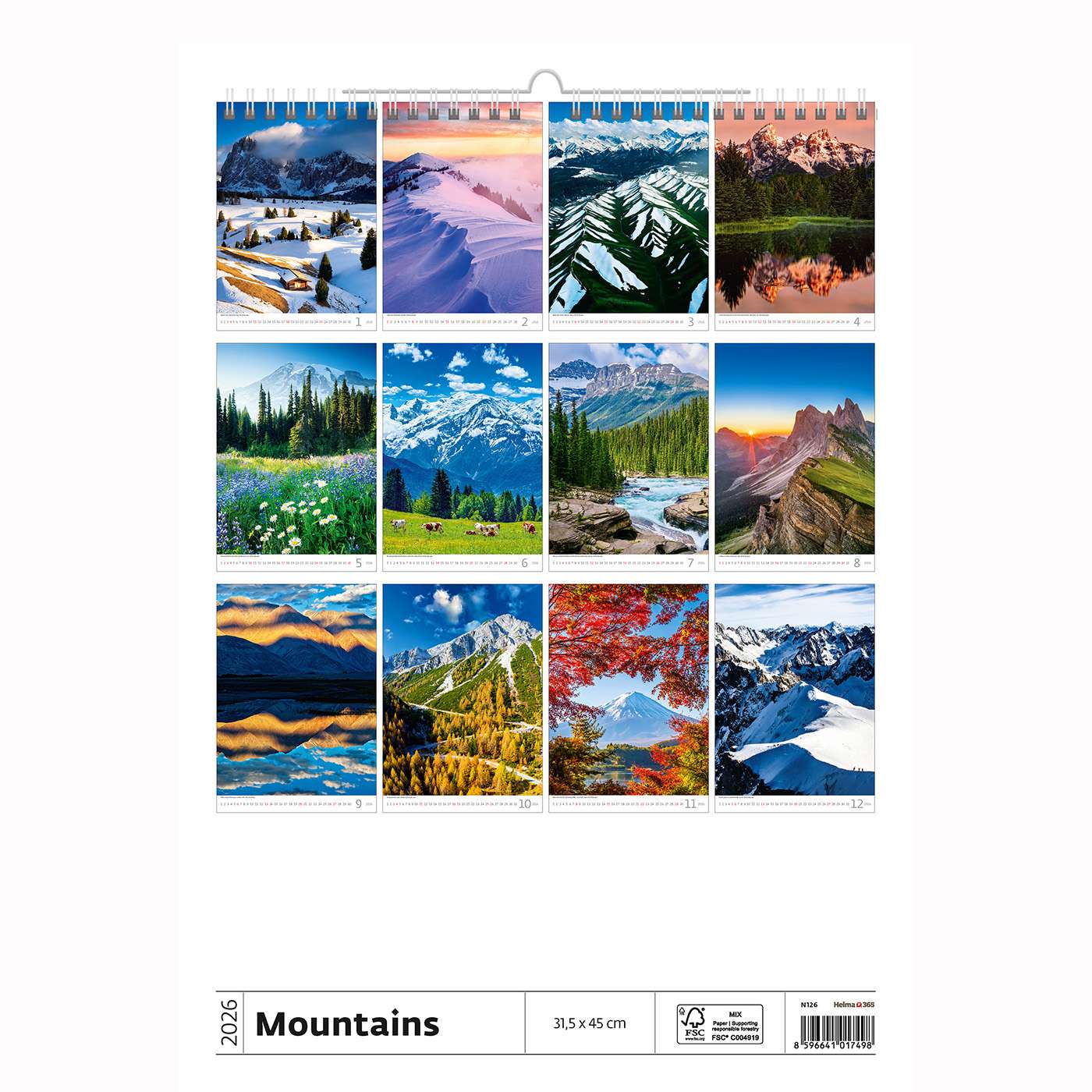 Elke maand toont een indrukwekkend berglandschap – van besneeuwde toppen tot groene valleien. Daarbij: of je nu droomt van de Alpen, de Pyreneeën of de Dolomieten – deze kalender brengt het gevoel van vrijheid en avontuur in huis. Kortom: het perfecte middel om kracht en rust te combineren.