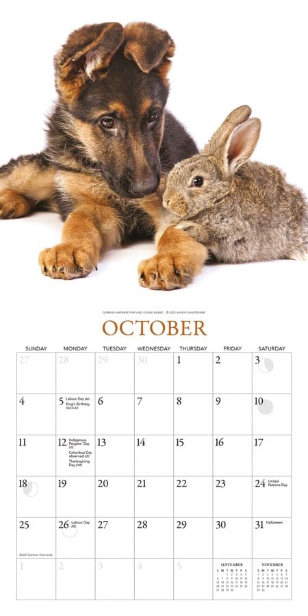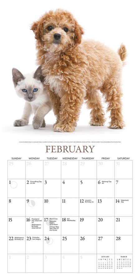Can't get enough of puppies and their fluffy friends? Then the Puppies and Friends Calendar 2026 Mini is really for you. Every month you will discover a new, heartwarming photo of playful dogs together with bunnies, kittens, ducks or other animal friends. In other words, a calendar that starts every day with a smile.