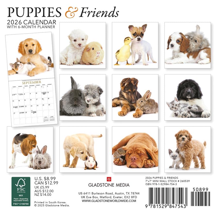 Puppies and Friends Calendar 2026 Mini - A happy surprise every month