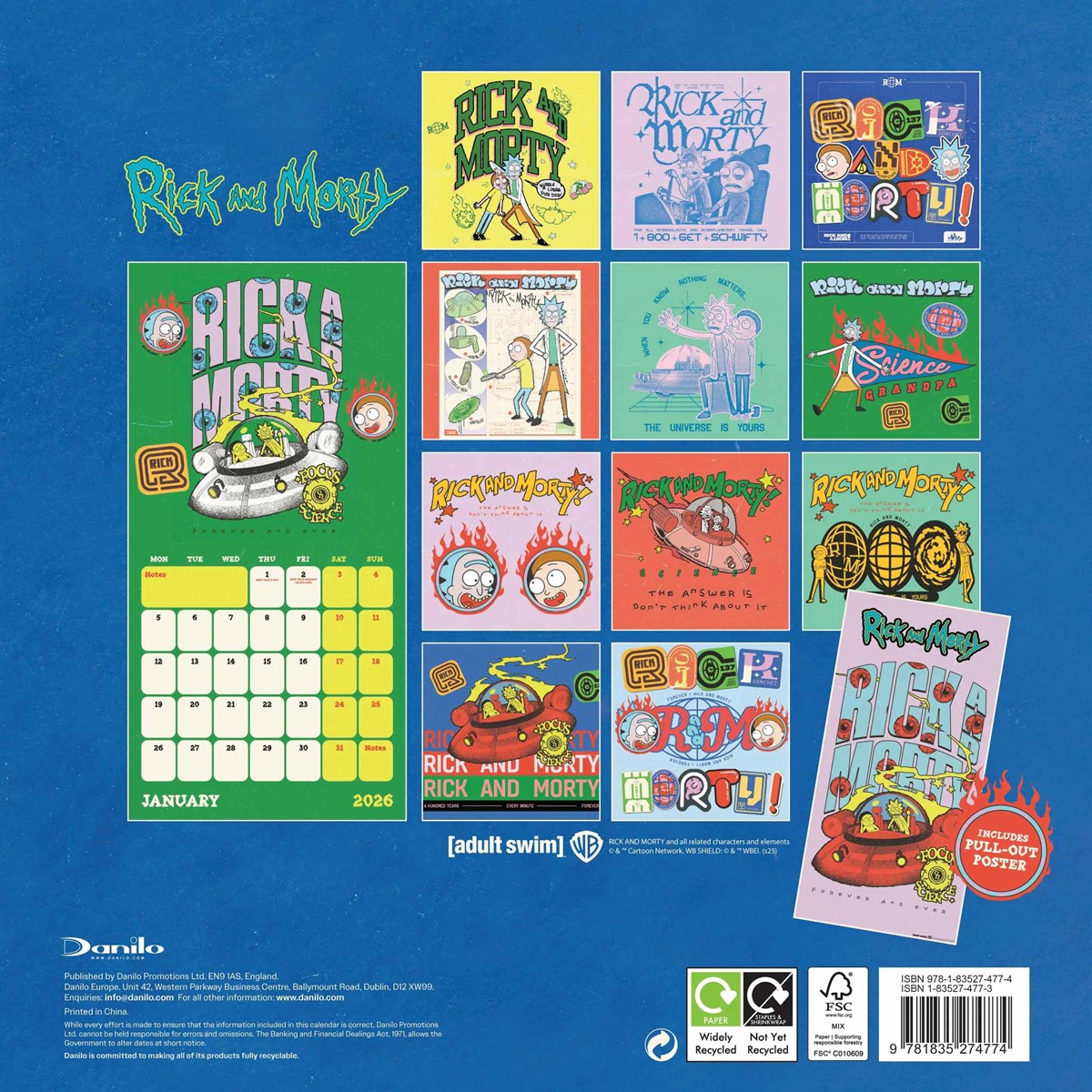 The calendar has a total of 12 different full-color images of 30 x 30 cm From 2025 the wall calendar will have a different beautiful full-color image of Rick and Morty every month, a must for the real fan.
